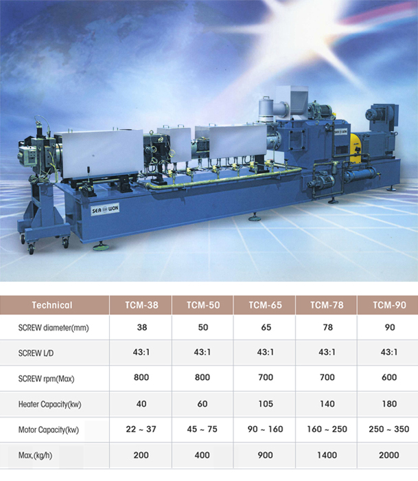 TCM twin screw continuors kneading extruder